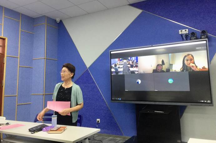 座谈会尾声,余惠芬经理对嘉宾们的分享、解答表示感谢,并对本次座谈会进行了简要总结。同时,她介绍了公司将要推出的帮助同学们提高英语运用能力及雅思应试能力方面的措施,如聘请新加坡外教线上开设雅思口语课程,利用课余时间开始雅思备考课程,外教一对一雅思口语训练等。