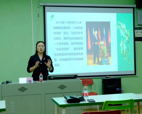 课堂伊始,经理从当前国际形势和现状出发,介绍了习近平总书记提出“人类命运共同体”的理念以及中国特色大国外交的含义和重要意义。